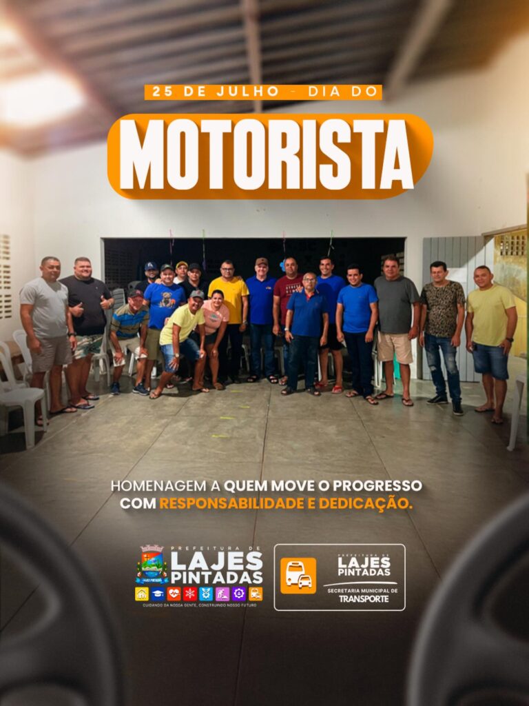 Hoje é dia de homenagear aqueles que, com dedicação e responsabilidade, enfrentam as estradas todos os dias para garantir o progresso e o bem-estar da nossa população. Nossos motoristas são peças fundamentais para o funcionamento dos serviços públicos e para o desenvolvimento do nosso município. Seja no transporte escolar, na saúde, em serviços administrativos ou em outras frentes, eles seguem firmes, movendo Lajes Pintadas com coragem e compromisso. Nosso reconhecimento e gratidão a todos esses profissionais que não medem esforços para servir com excelência! Cuidando da Nossa Gente, Construindo Nosso Futuro! 🚀✅